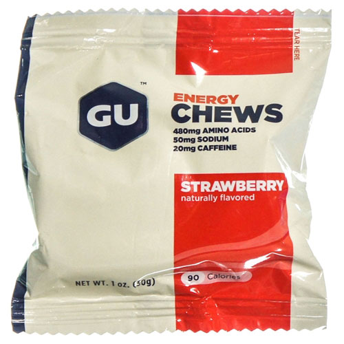 GU Energy Chews son gomas Energéticas sin cafeína que nos aportaran la energía necesaria para seguir con el entrenamiento o competición Su composición con carbohidratos, sodio, potasio, vitaminas y aminoácidos hacen que sean igual a los geles pero con un formato más sólido y agradable a la boca.