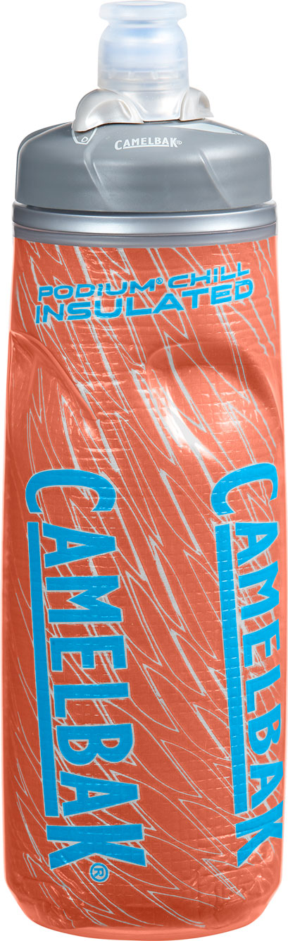 El 21 fl. onz. CamelBak Podium Chill Insulated Water Bottle utiliza una construcción de doble pared para mantener el agua fría mucho tiempo después de que empiezas a pedalear