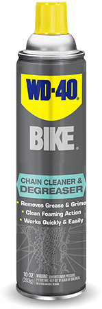 La espuma WD-40 BIKE® Chain Cleaner & Degreaser se adhiere a la superficie de las bicicletas para penetrar profundamente y eliminar rápidamente la grasa y la mugre difíciles de las cadenas de bicicletas y el resto de la transmisión. Seguro para acabados y componentes de bicicletas y no contiene cítricos, lo que puede dañar los barnices y la pintura.